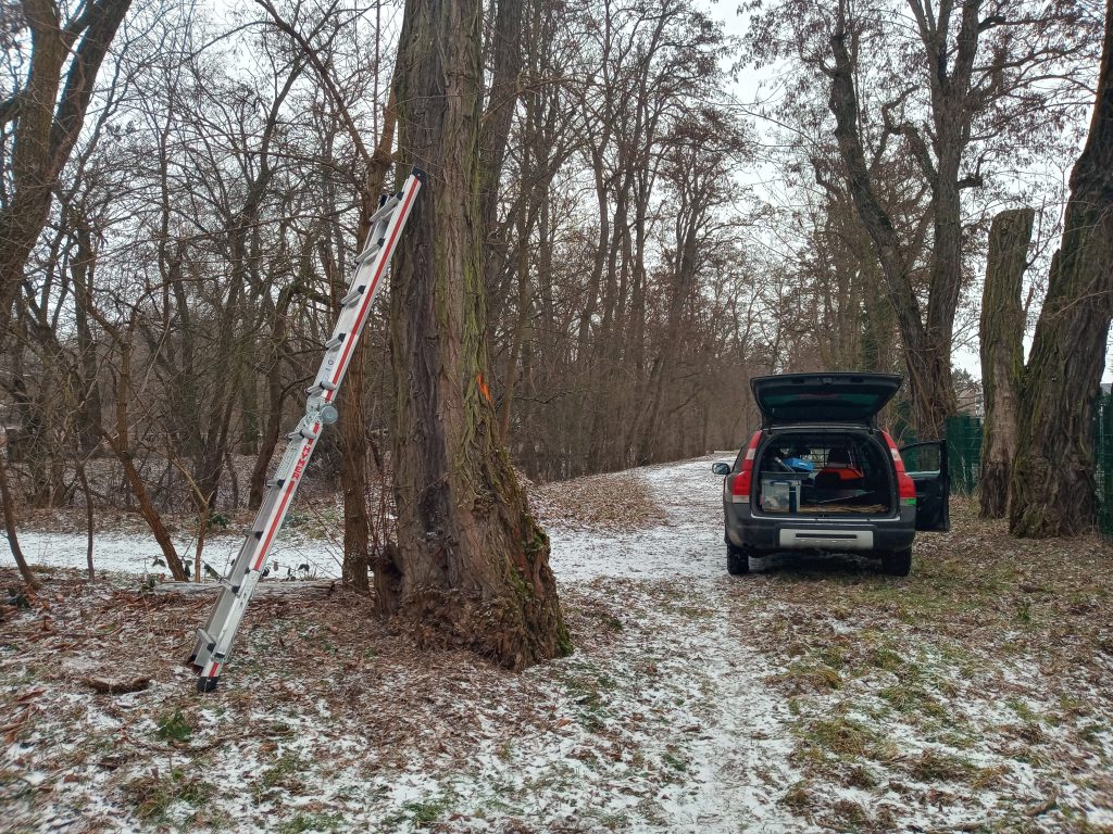 bauvorauslaufende Besatzkontrollen (z. B. Vögel, Fledermäuse, Insekten, Kleinsäuger) an Bäumen und Gebäuden,